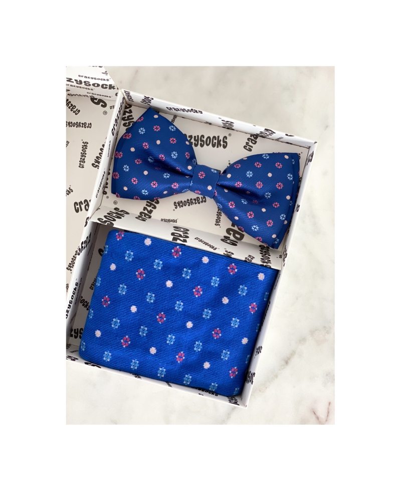 Комплект от памучни чорапи в универсален размер (подходящи за носещи от 40 до 45ти номер) и папийонка. Идеален за елегантна визия с костюм, както и спортно-елегантна такава. Перфектен подарък за обичащите различното и залагащи на модерна и разчупена визия.