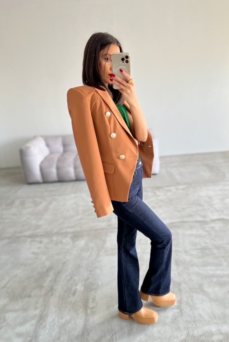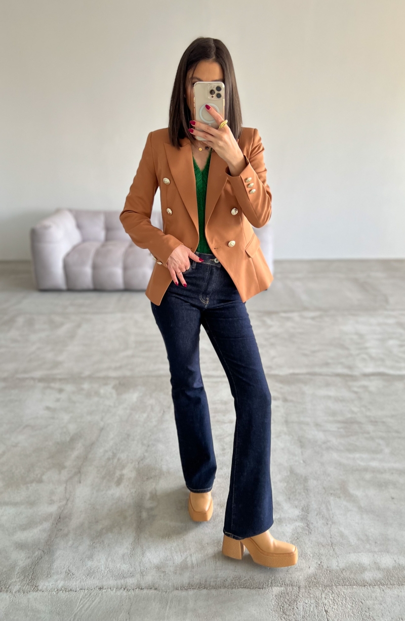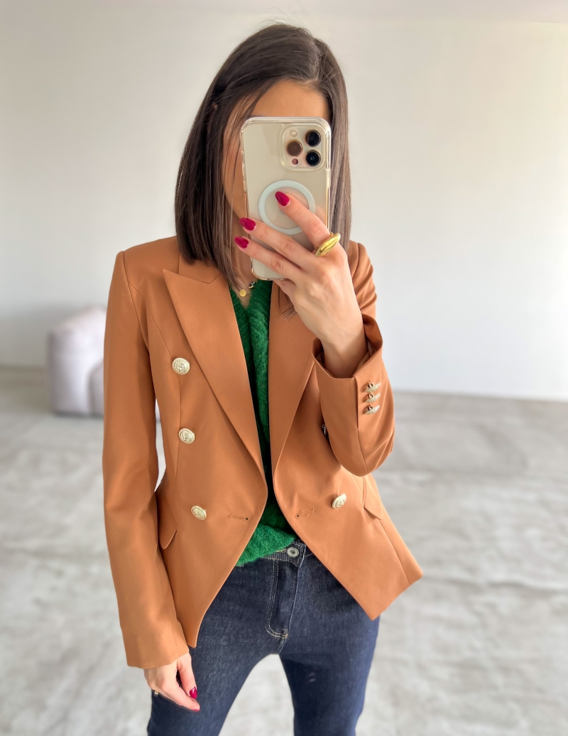 Сако с вталена линия и двуредно закопчаване. Изключително високо качество на изработка, с внимание към всеки детайл. Моделът е подходящ за елегантна визия, както и спортно-елегантна такава. Изработено от средно плътен плат, по-скоро към тънък.