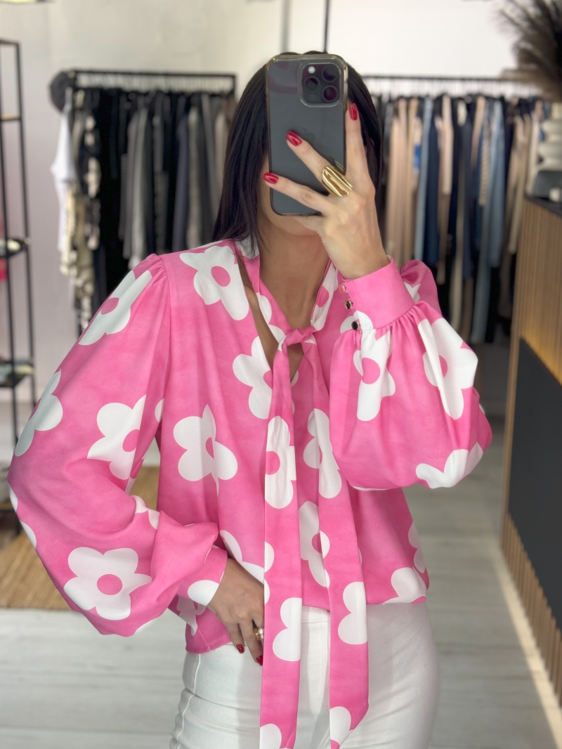 Дамска риза "КАТЕ"/ розова с бяло цвете